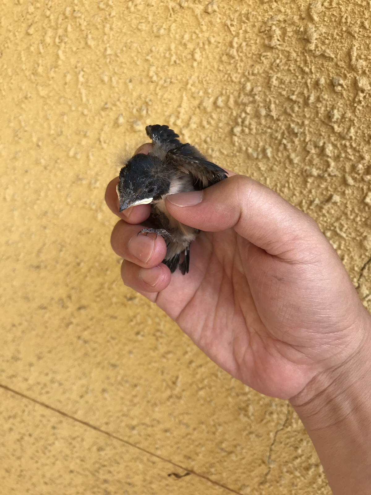 私が巣に戻す時にタイミング悪く親ツバメも巣に帰ってきました。