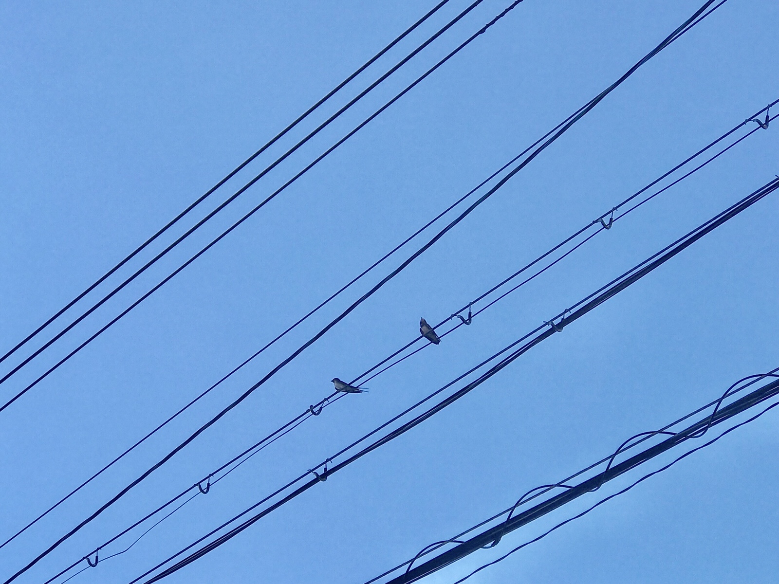 20m程離れた電線に子ツバメがいました!